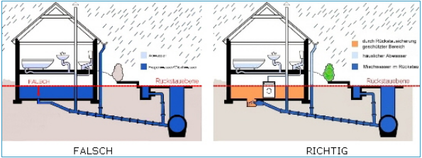 Und oft erfährt der Hauseigentümer auch erst dann, dass es in seinem eigenen Aufgabenbereich liegt, sich gegen Rückstau zu schützen und Versicherungen hierfür nicht zahlen.